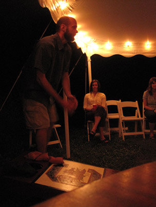 A few other wedding guests cleared out an alley among the tables under the big top so we could play under the lights. We had heard rumors that one of the girls was a cornhole ringer. Apparently she won an iPod at a cornhole tournament or something. Perhaps this would be where it all ended.