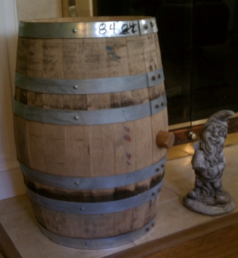 8-gallon whiskey barrel from Tuthilltown Spirits. Gnome not included.